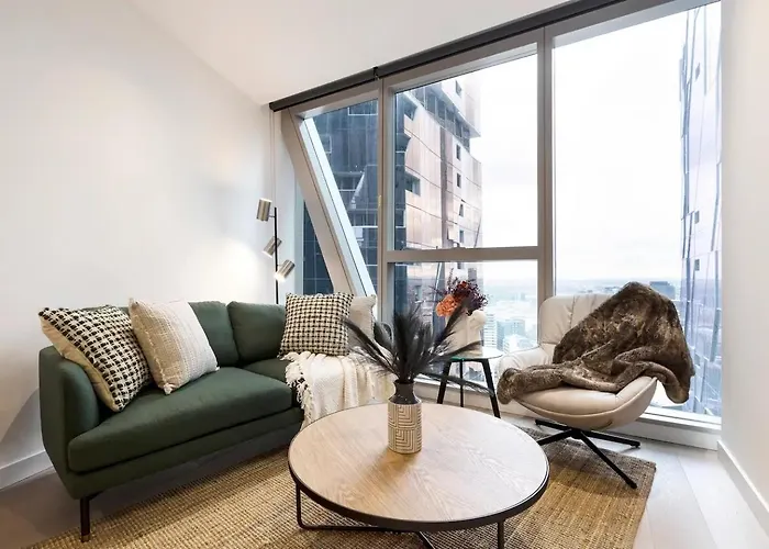 The 80 m² Earthy Retreat In Melb'S Shopping Hub With Views Apartment Melbourne lies in a residential area, giving access to the interactive multilevel SEA LIFE Melbourne Aquarium, which is about 20 minutes' walk away. Guests can lounge by a private pool before taking a cooling dip.